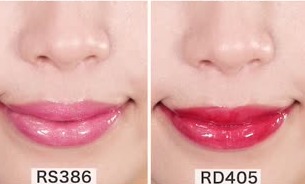 ベージュ系のBE330やPK784はナチュラルな大人っぽい唇になります。色味が強いRS386とRD405はパキッとした発色でお出かけにぴったり。PK312・PK414はオフィスメイクや普段使いしやすい色味です。