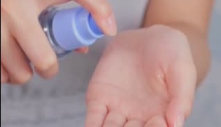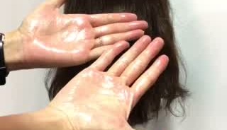 手のひらにスタイリング剤を2プッシュほど出し、指につけて前髪に少量つけます。