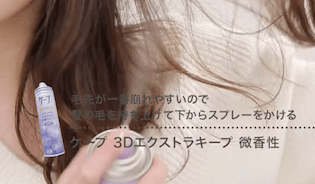 毛先を持ち上げ、下からふんわりとスプレーしていきます。