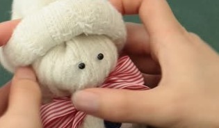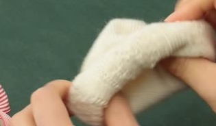 最後に帽子作り!靴下の下部分を外側にくるくると折り込んでいき、帽子を作りましょう。