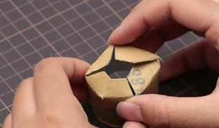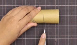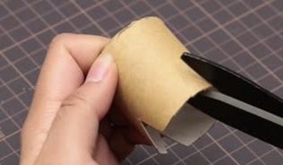 トイレットペーパーの芯を5㎝ほどにカットし、バランス良く立つようにはさみで4箇所に切り目を入れて、折りましょう。