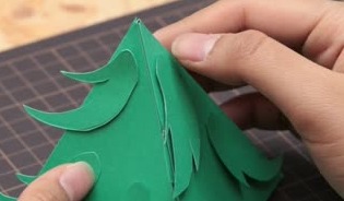 ツリーの土台となる緑の画用紙を切り出します。