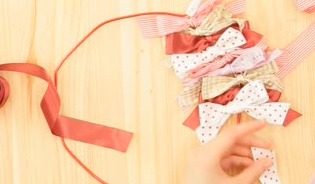 全体にリボンを結びつけ、デコレーションしていきます。リボン結びでOK!