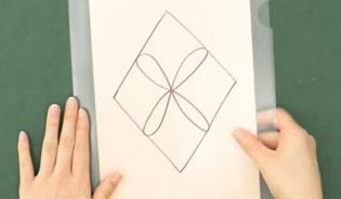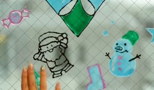 黒のガラス絵の具を使って、手順1で書いた下書きをクリアファイルの上からなぞっていきます。