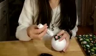 プラスチック製のボールにのりを塗っていきます。ボールの大きさは、お好みでOK!