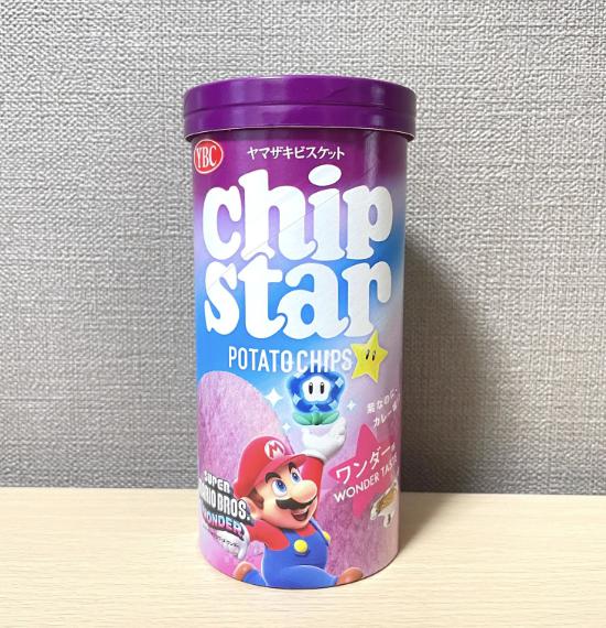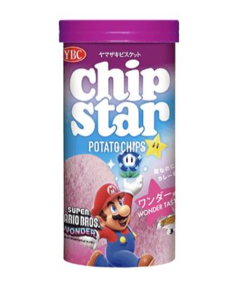 任天堂(株)の新作ゲーム「スーパーマリオブラザーズ・ワンダー」と連動したコラボレーションフレーバーです。味わいは国民的に愛されている”マリオ”と”チップスター”にちなみ、国民食である「カレー」にすることで、大人から子供まで楽しめる味わいにしました。また新作ゲームのキーカラーに合わせ、チップスの色を「紫色」にしました。「紫色のカレー味」からくる、ワンダー(驚き・楽しみ)な美味しさです。
