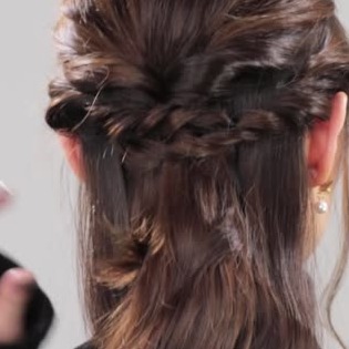両サイドの髪をロープ編みにし、中央で1つにまとめます。