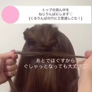 ねじりんぱとは、くるりんぱの穴に髪を2回通すことです。