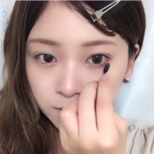 次に下まぶたのアイメイクを。涙袋で目の幅を広げるとデカ目が作れますよ。