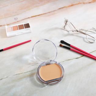 コンシーラーをブラシに取り、二重風に作った影をぼかすことでナチュラルな目元に♪