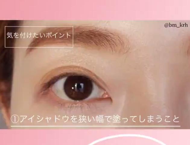 アイシャドウの幅を狭くしてしまうと、目の縦幅が狭くなり、目が小さく見えてしまいます!
