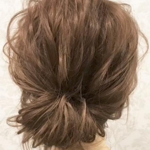 ダブルくるりんぱで作る、簡単まとめ髪。ルーズにほぐした髪の毛がこなれ感を演出してくれます!
