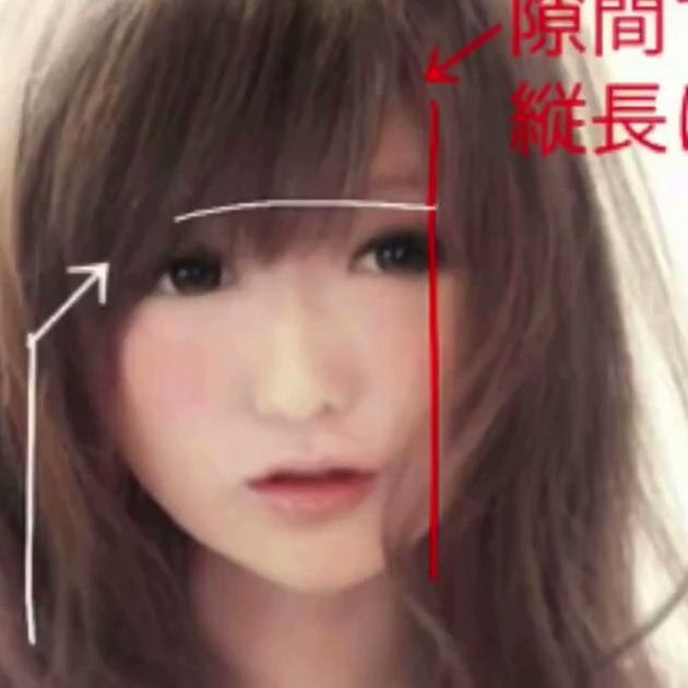 さらに前髪に隙間をあけて縦長に見せることで、理想の顔型であるひし形に近づきます。
