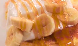キャラメルソースとバナナの絶妙な甘さがたまらない定番のおいしさです。朝ごはんやブランチにおすすめ!