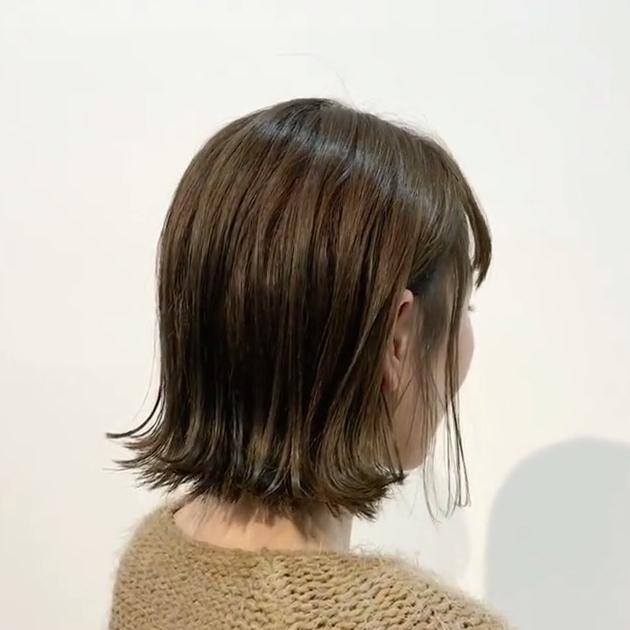 肩につかない長さのショートヘアは、毛先の流れによって自然な外ハネができるので時短にも。