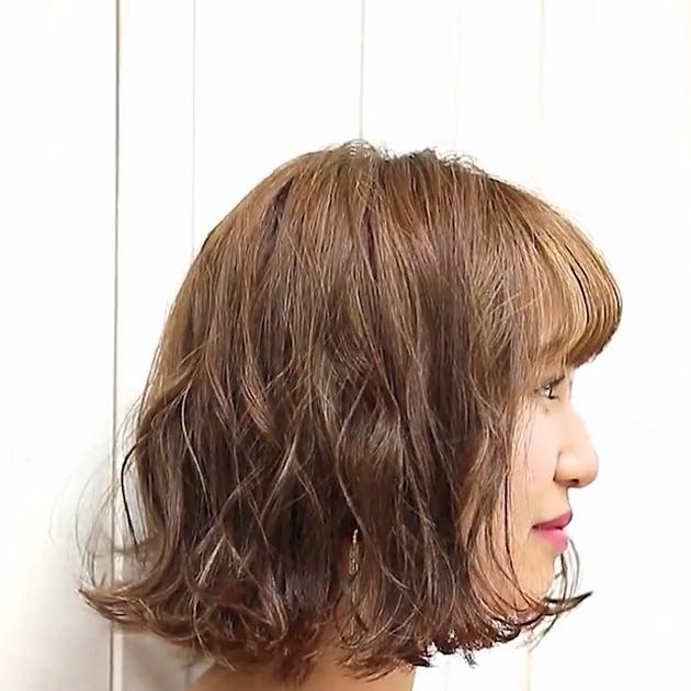 髪をブロッキングし外ハネ、内巻きを繰り返して巻いていきます。内側のインナーカラーが引き立ち、よりかわいくおしゃれなショートヘアアレンジに。