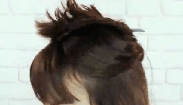 写真のように、サイドと後ろの髪をそれぞれ外ハネさせていきます。