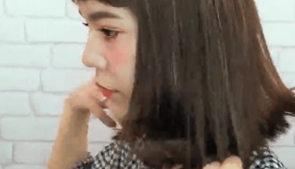 そして、ブロッキングした下側の毛先から外ハネさせていきます。
