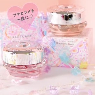 見た目もかわいくて持っているだけでハッピーになれるジルスチュアートのアイシャドウ。キラキララメが目元をパッと華やげてくれるので明るい印象に。