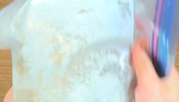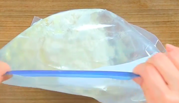 ジッパーを閉じて振るような感じで全体をかき混ぜてください。