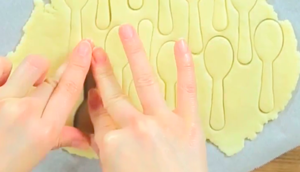 スプーンの形の型抜きを当てて型抜きしていきましょう。