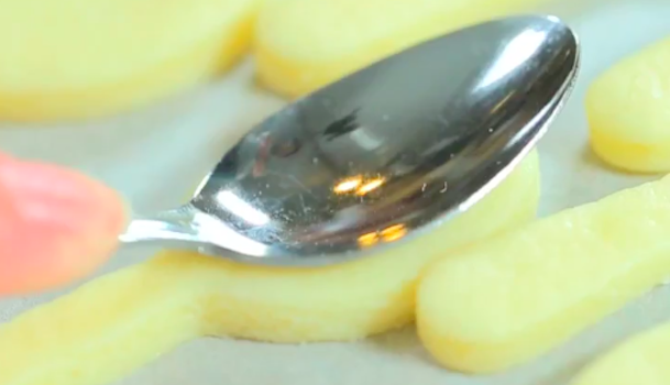 スプーンの丸みを使ってクッキーのスプーン部分にくぼみをつけます。