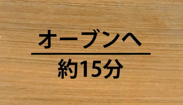 180℃に予熱したオーブンで約15分焼きます。焦げないように注意してください。