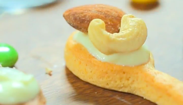 ナッツやチョコなど、お好みの物をトッピングして、完成です。今回はプレーンとココアの2種類でしたが、抹茶などを使ってみてもいいですね♪