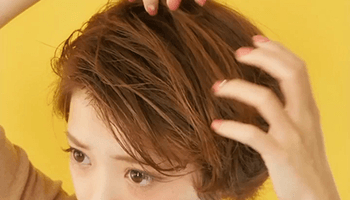 無造作に8:2に分け、根本→トップ→横に流す の順に手でかきあげていきます。このとき、トップに一番ボリュームがくるようにするのがポイント!全体のバランスを整え、ふわっと立ち上げたら完成です。