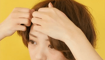 8:2くらいで分け目をつけて、トップ毛を顔の前に持っていきます。次におでこにかけるように髪を流して、毛先をの方まで持っていきます。このとき、おでこの上の方を抑えながら前髪を作っていくのがポイントです。