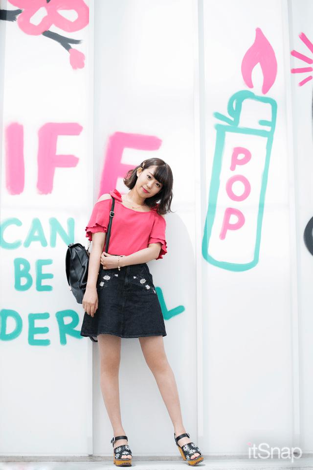ミニスカートに小さめリュックは女子の定番コーデ。デートにもぴったりですね♡