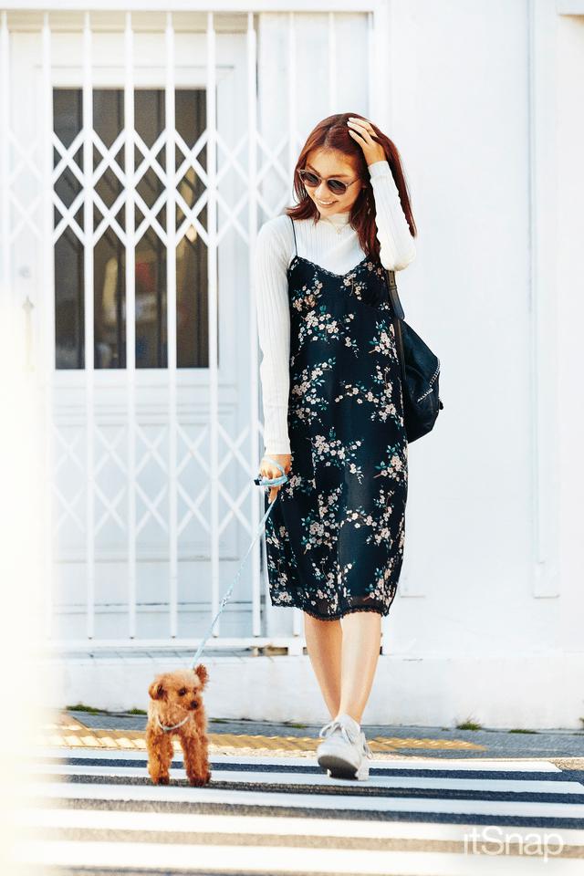 主張しすぎない花柄は女性を上品に見せてくれます。大人っぽい花柄ワンピースに、リュックを合わせれば抜け感のある大人かわいいコーデの完成♡
