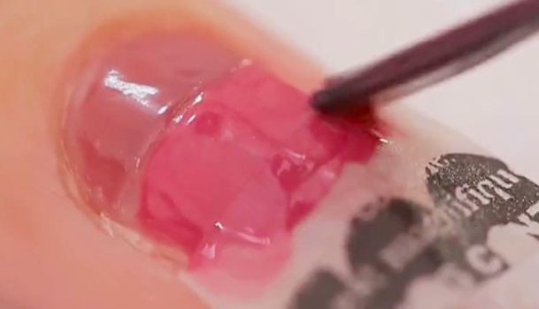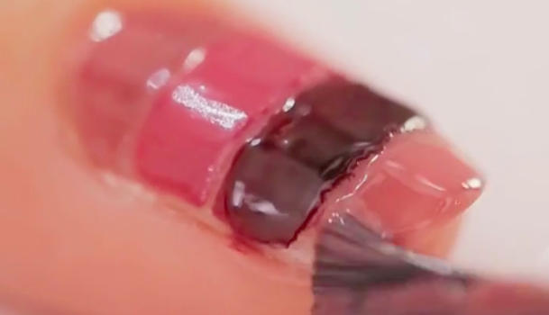 手順1、手順2と同様にして、3色目に濃いめワインレッド、4色目にくすみ紫のポリッシュをぬってください。