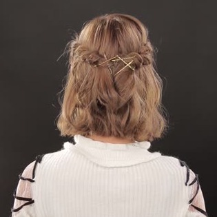 簡単なロープ編みだけでできるハーフアップ。かわいらしい金ピンで留めたふわふわヘアで、後ろからの視線も釘付けに♡