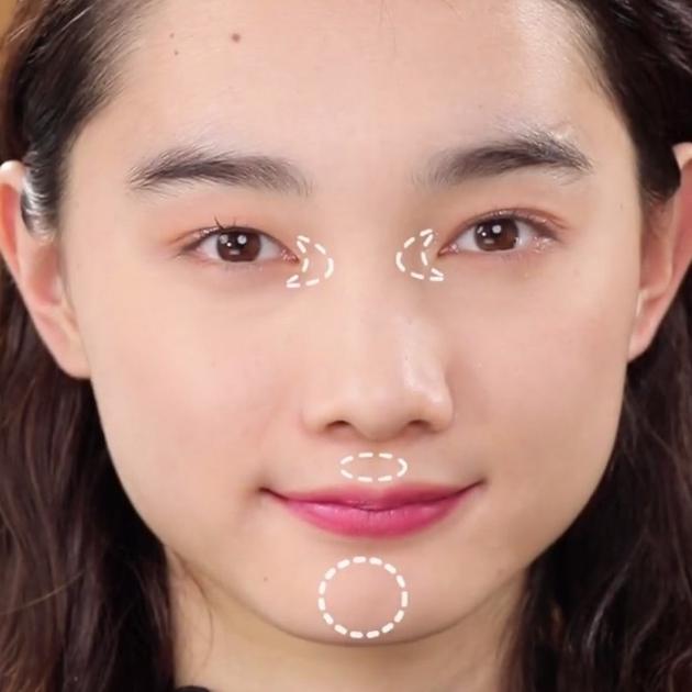 目頭・口元・あごにも細かくハイライトを入れることでパーツを引き立たせ、メリハリをつける ことができます。