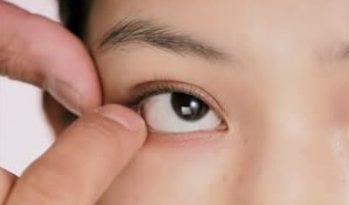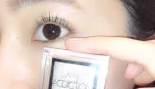 まずは指を使ってアイシャドウを二重幅に入れていきます。