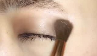 次に、やわらかめのブラシを用意し、二重幅の上あたりにブラシを左右に動かしながら入れていきます。クリース(眼球と骨の間)を軽く押すように塗っていくと綺麗なグラデーションができますよ♪