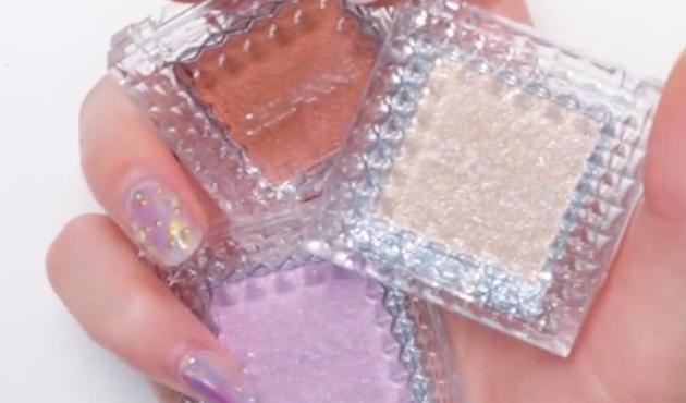 Excelの「シャイニーシャドウ」は、大粒のパールとラメをミックスしたキラキラアイシャドウ。密着力が高く、粉落ちしにくくラメがしっかりまぶたに密着してくれます。