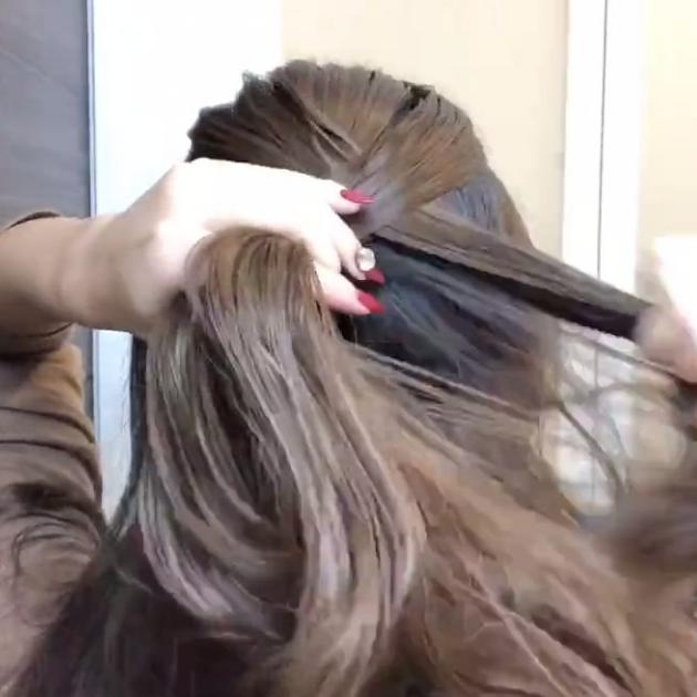 トップの髪を三等分にして、普通の三つ編みを1〜2回していきます。