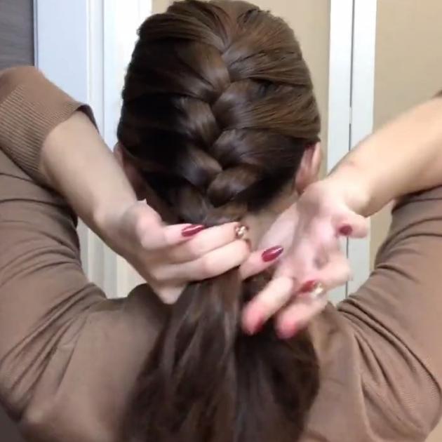 サイドの髪がなくなったら、三つ編みに切り替えます。