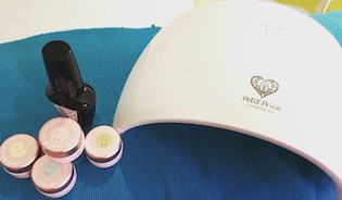 レジン液を全体に塗ったら、UVライトを当てて固まるまで待ちます。