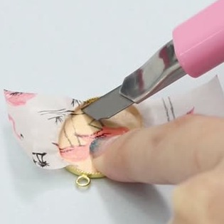 レジン台になるペンダントの型に、マスキングテープを貼り付けます。カットした時のことを考えて、柄の最も見せたい部分を型貼るようにしましょう。