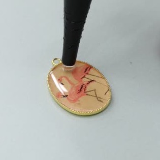 ペンダントの型いっぱいまで、レジン液を流し入れます。型からはみ出ず、ぷっくり浮き上がるくらいまで入れるのがポイント◎