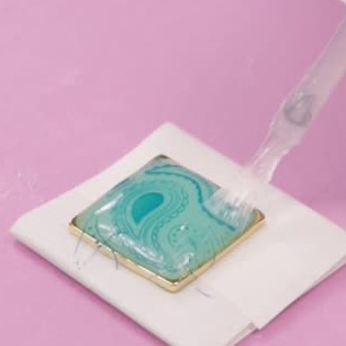 レジンの表面にトップコートを塗って、乾かします。しっかりコーティングすると長持ちしますよ◎