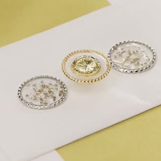 ゴールドのリングに半円パールパーツを入れたら、UVライトを当てて固まるまで待ちます。パーツが離れないように、液にしっかりと入れましょう◎