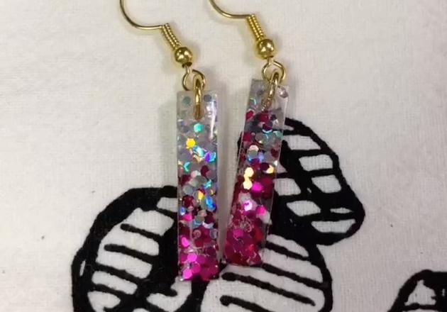 レジン液が固まったら、シリコンケースから出しましょう。ペンチを使ってピアス部分と金具を取り付けたら、ラメがとってもキュートなレジンピアスの完成です♡