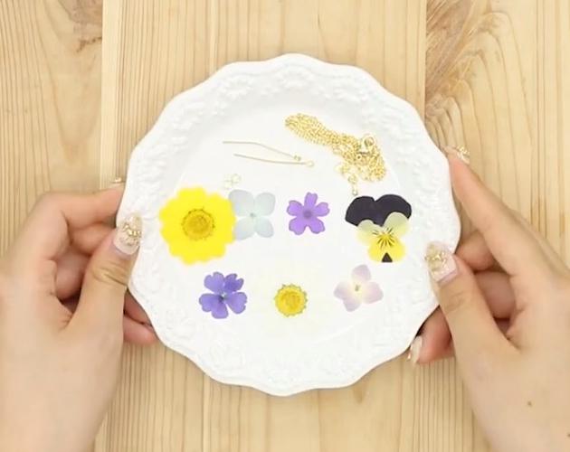 レジン液が固まったら、最後にネックレスのバーツをつけて完成です♡ぜひかわいい押し花をファッションに取り入れてみては?