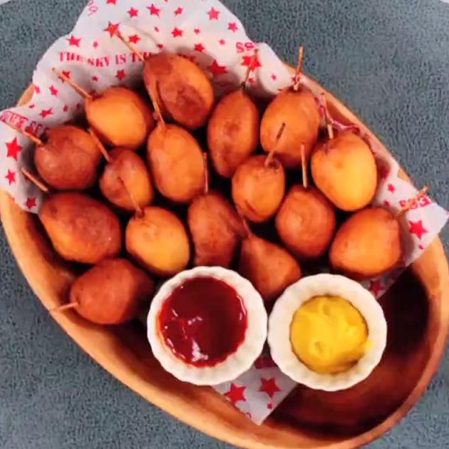 ホットケーキミックスを使ってできる、小さなアメリカンドッグです!量産できるので大人数のピクニックでもバッチリ!