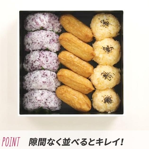 おにぎりやおかずなど、向きを工夫して隙間なく並べましょう。そうすれば「フタを開けたらお弁当が寄っちゃっている」なんて心配もなし!