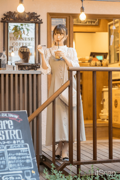 カフェデートするなら、上着を脱いでもかわいいワンピースをチョイスしましょう。肩が出るタイプのものなら、彼をドキっとさせられるかも!?